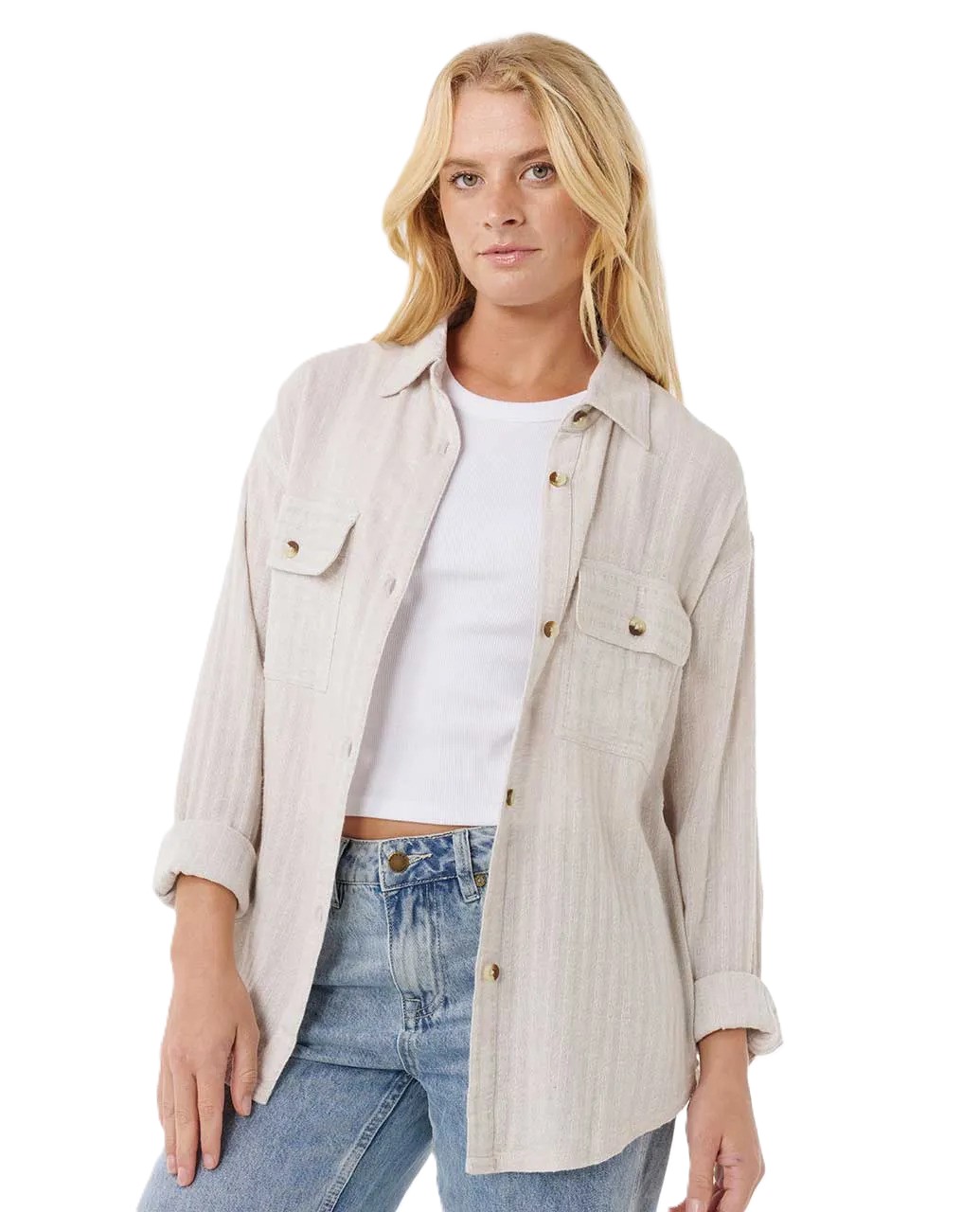 The Oceanic Textured Shacket brings relaxed structure to your layering game.