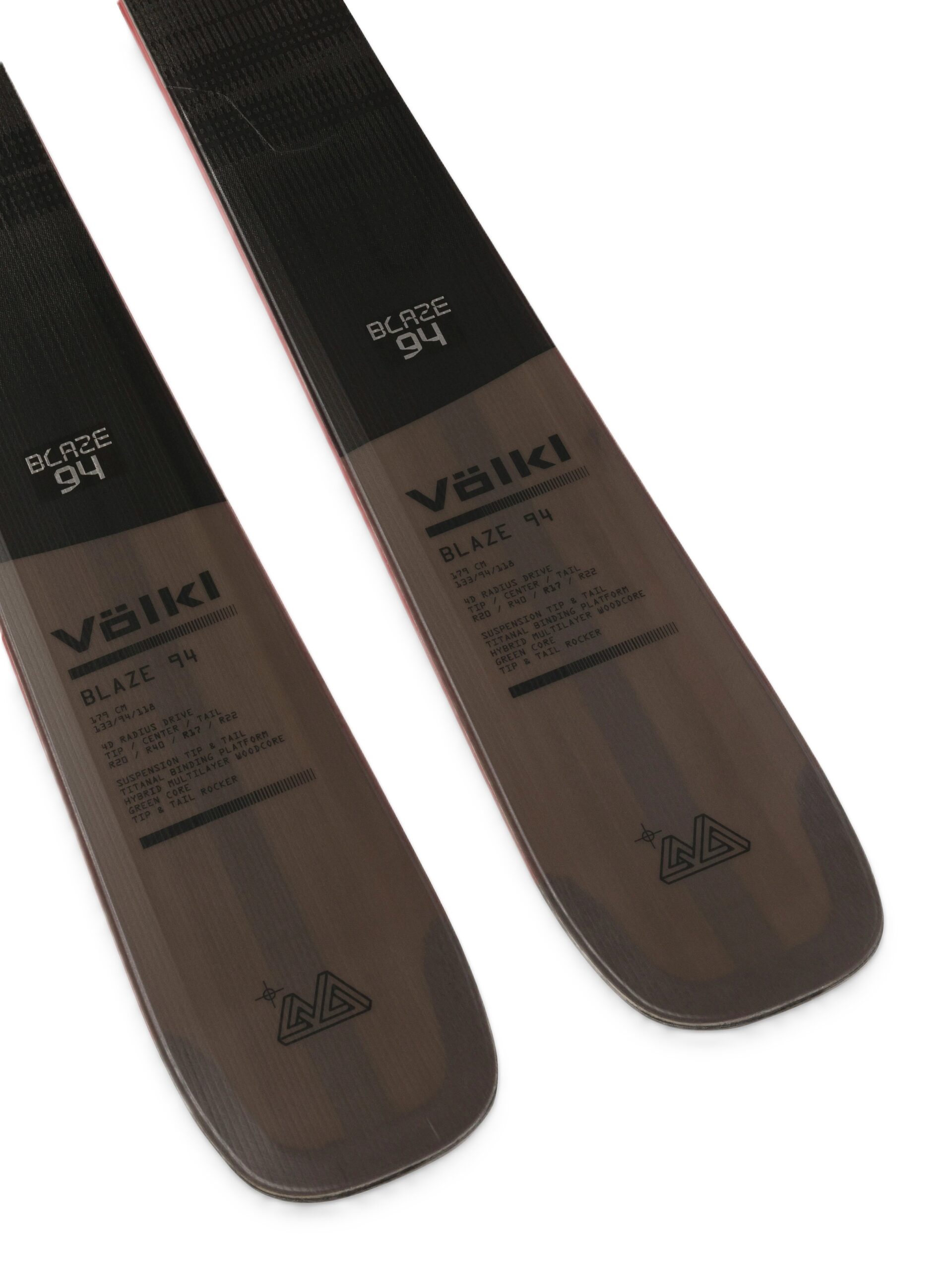 Overview | The re-engineered Völkl Blaze 94 Skis are built for skiers who demand lightweight precision, excellent stability, and the versatility to handle technical all-mountain terrain while remaining light enough for alpine touring. Featuring 4 Radius Drive sidecut technology, a Hybrid Multilayer Woodcore, and a Titanal binding platform, these skis balance stability, edge grip, and agility for intermediate to advanced riders |