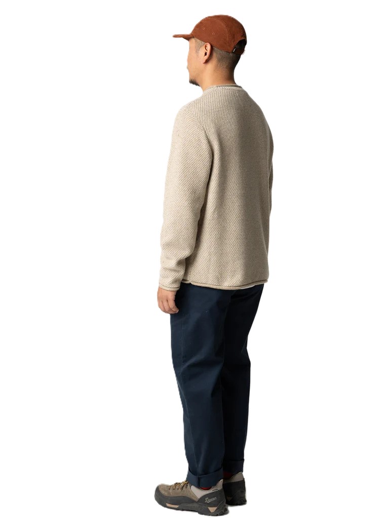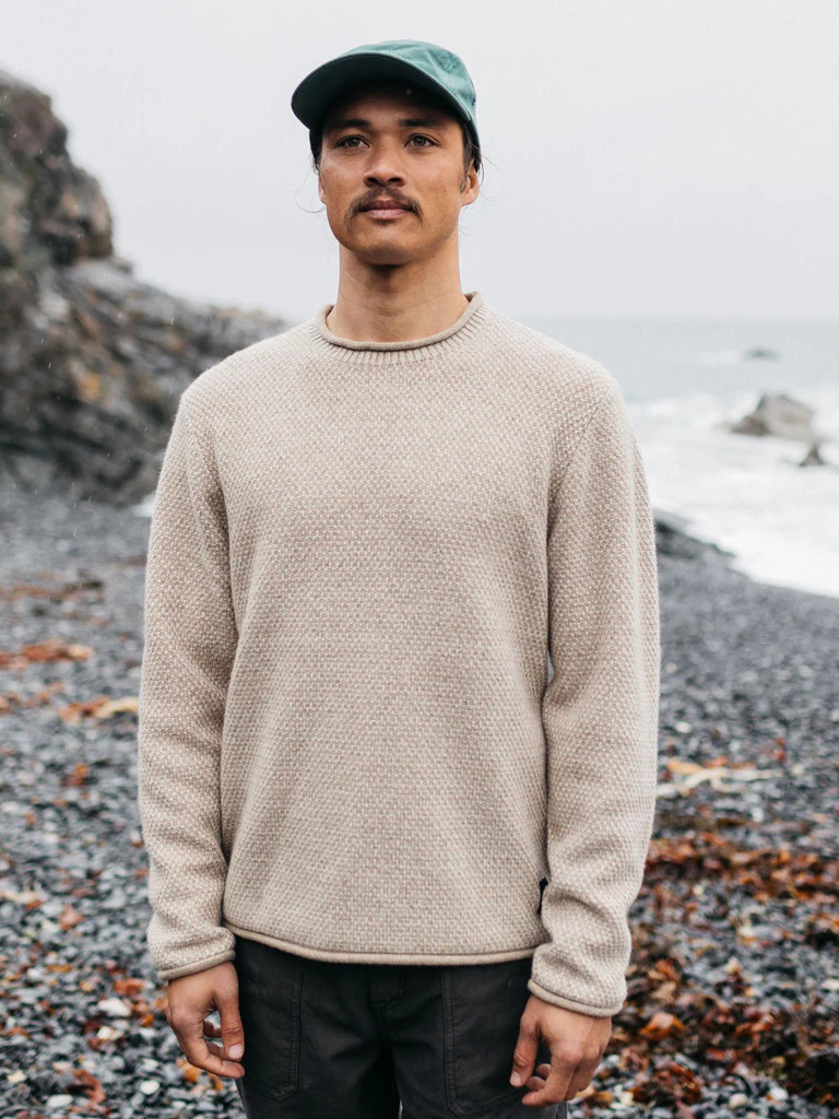 | Description | A heritage-inspired knit made with a soft 80% wool and recycled nylon blend for warmth, durability, and lasting shape. The textured fisherman’s stitch provides insulation while remaining thin enough for layering. |