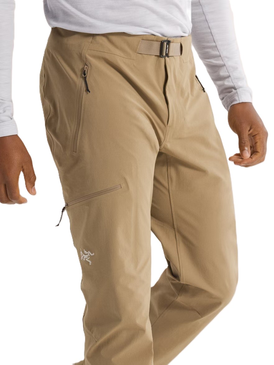 Pocket Configuration | Two hand pockets with zippers Harness-friendly zippered thigh pocket |