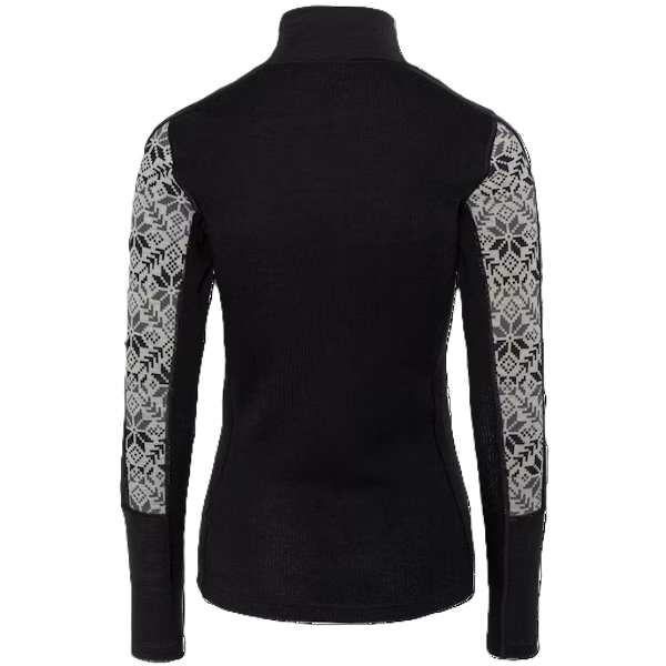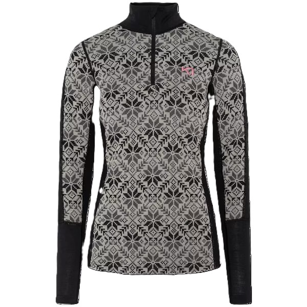 | Design | Bold Nordic print with high collar and half-zip front for ventilation |