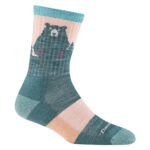 The Women’s Bear Town Micro Crew Lightweight Hiking Socks feature breathable merino wool, seamless comfort, and playful bear-inspired style, offering lightweight cushioning, durability, and lifetime-guaranteed performance for every hike.