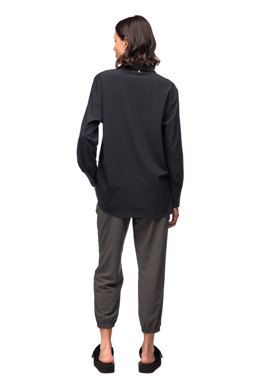 Like its name, this long-sleeved blouse with snap buttons is breezy and lightweight. The tunic length and airy feel are perfect for throwing on over leggings, shorts or your swimsuit.