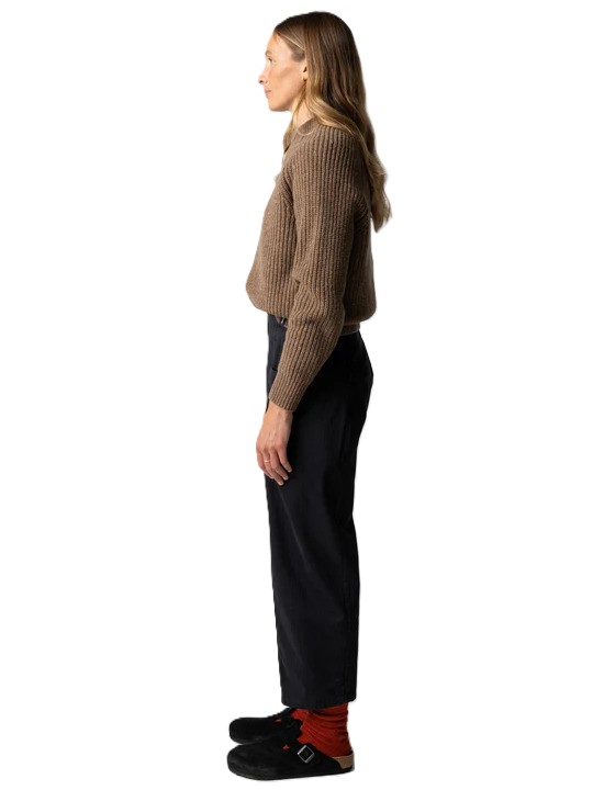 The Mora women’s merino wool sweater is a feminine take on a traditional fisherman knit.