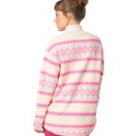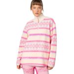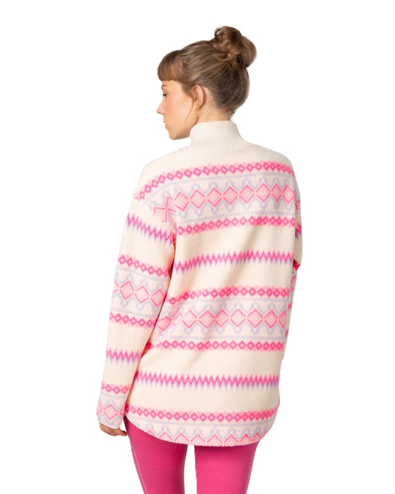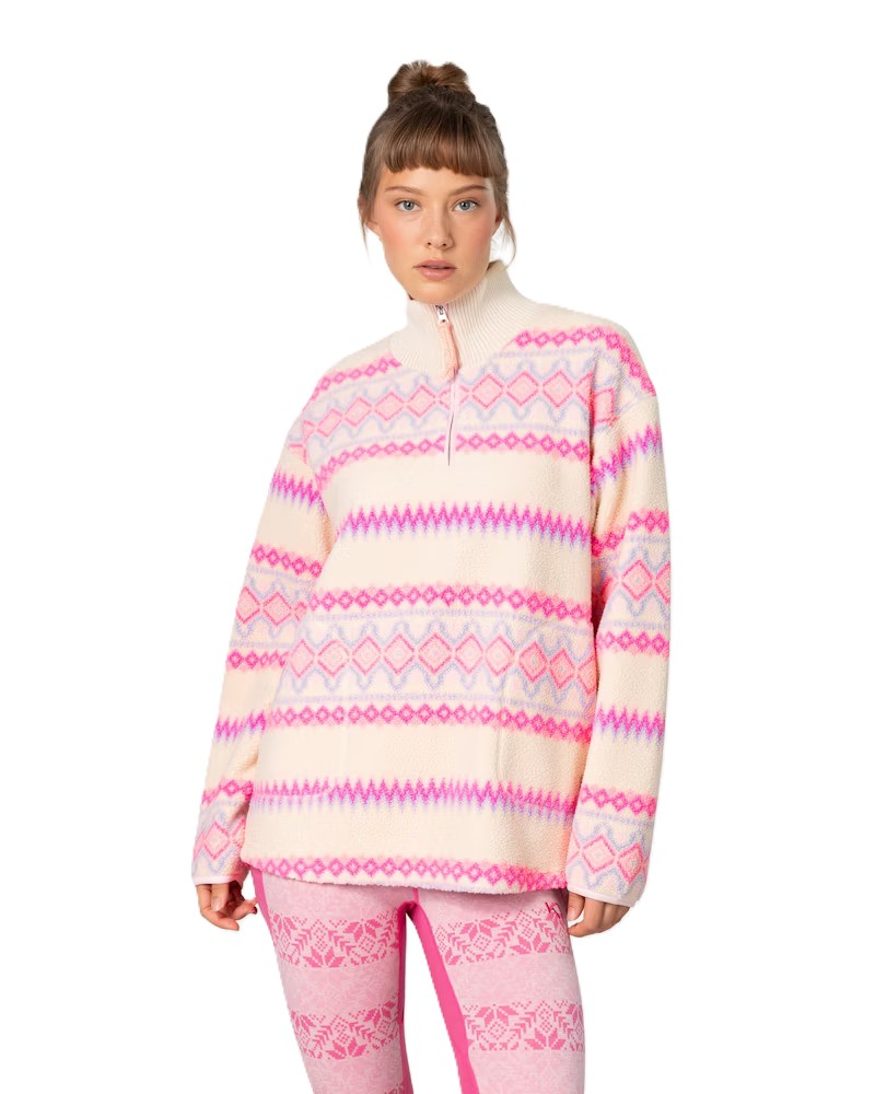 The Kari Traa Ruthie Midlayer Half Zip, cozy and eco-friendly, features a booty-covering length, hand pockets, and a unique Norwegian pattern, ensuring style and comfort don’t take a back.